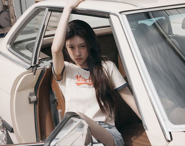 고윤정의 새로운 비주얼이 공개되었다. 이번 화보는 여름을 담아낸 듯한 빈티지한 색감과 올드 카를 활용하여 새로운 매력을 선보였다. 고윤정은 긴 머리와 내추럴한 메이크업으로 시크한 포즈를 취하며 새로운 컬렉션을 다채롭게 연출했다. 빈티지한 로고가 멋스러운 반팔 티셔츠와 데님을 매치해 고윤정만의 썸머 캐주얼을 보여주었고, 클래식 로고 니트를 입고 올드 카에 누워 여유로운 포즈를 취하는 등 화보 장인다운 모습을 선보였다.