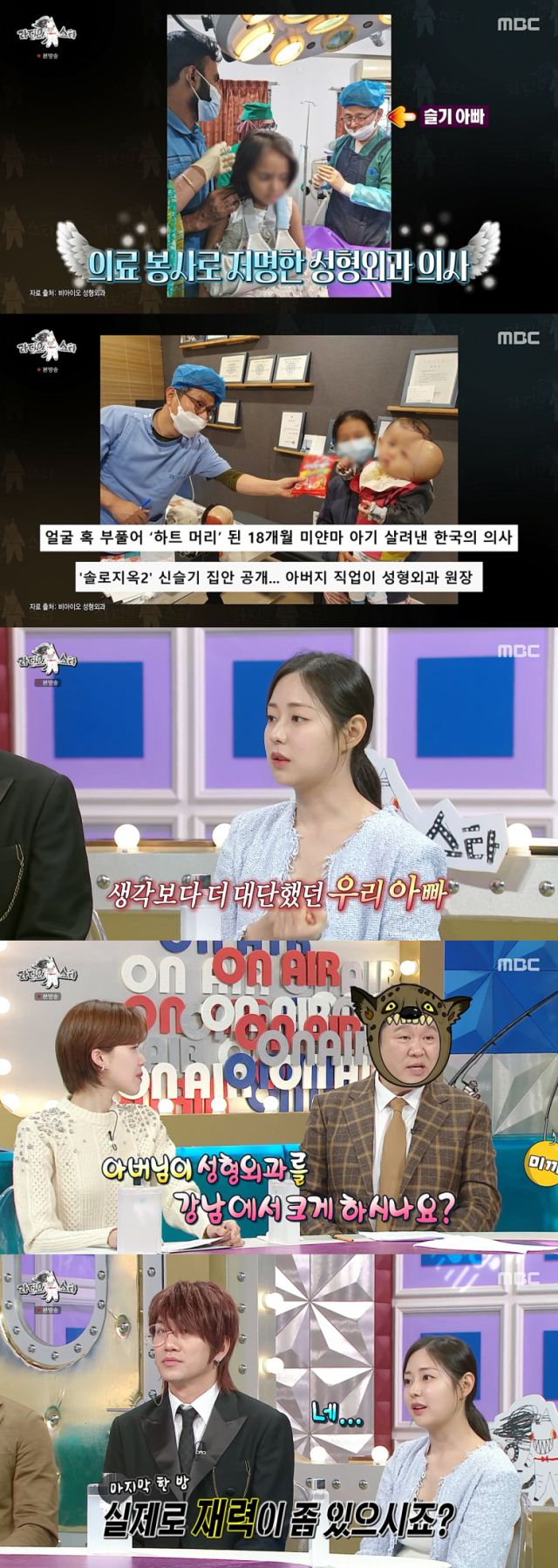 이날 방송에서 신슬기는 "'솔로지옥2' 이후에 화제가 된 게 또 있다고?"라는 김구라의 물음에 "제가 '솔로지옥2'로 주목을 받았는데 또 공교롭게도 저희 아버지가 화제가 됐더라고. 저희 아버지께서 의료 봉사로 저명한 성형외과 의사시더라. 머리에 큰 혹이 난 미얀마 아이를 직접 수술을 해주시고"라고 답했다.
