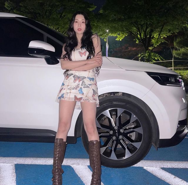 사진 속 권은비는 나비 문양이 포인트인 시스루 원피스를 입고 포즈를 취하고 있습니다. 차에 기댄 권은비는 쭉 뻗은 각선미를 자랑하고 있어서 군살 없는 이기적 몸매가 감탄을 자아냅니다. 또한 '워터밤'의 계절을 알리듯 한층 물오른 청춘 미모에도 눈길이 갑니다.