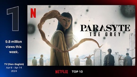 17일 넷플릭스 TOP 10 웹사이트에 따르면 지난 8일부터 14일까지 '기생수: 더 그레이'는 980만 뷰를 기록하여 넷플릭스 글로벌 TOP 10 TV시리즈(비영어) 부문 1위를 차지했다. 이는 영어 부문 1위인 '삼체'의 480만 뷰를 훌쩍 뛰어넘는 기록으로, '기생수: 더 그레이'는 영어와 비영어 통합 1위까지 오르며 놀라운 저력을 과시했다.