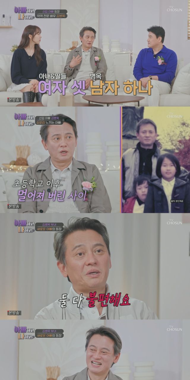 김병옥은 자신의 가족 구성을 소개하며 "저희 집 가족은 저, 아내, 두 딸, 그리고 강아지 뭉치까지 이렇게 있다"며 "저는 두 딸에게 다정한 마음은 늘 가지고 있다. 마음만. 그런데 사실은 안 그런가 봐"라고 고백했다. 이어서 "여자들 셋 하고 남자 하나잖아. 늘 소외되는 느낌이 든다. 또 늘 쓸쓸하다고 할까...? 집에 들어갈 때마다"라며 자신의 가정에서 느끼는 불편함을 털어놓았다.