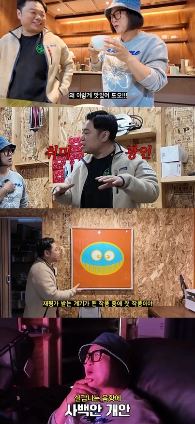 또 정종철은 그림존으로 이동해 "임혁필 형이 화가로 재평가 받는 계기가 된 작품 중에 첫 작품이에요. 제가 제일 큰 그림을 사줬어요"라며 임혁필의 그림을 소개했다. 이어 정종철은 음향존에는 1200만 원 가량의 스피커 13개와 앰프가 있다고 밝혔다. 김숙은 "스피커만 경차 정도 되는 거죠? 이제 동자라고 못 부르겠어요. 동자 님이라고 불러야겠어요"라며 웃음을 자아냈다.
