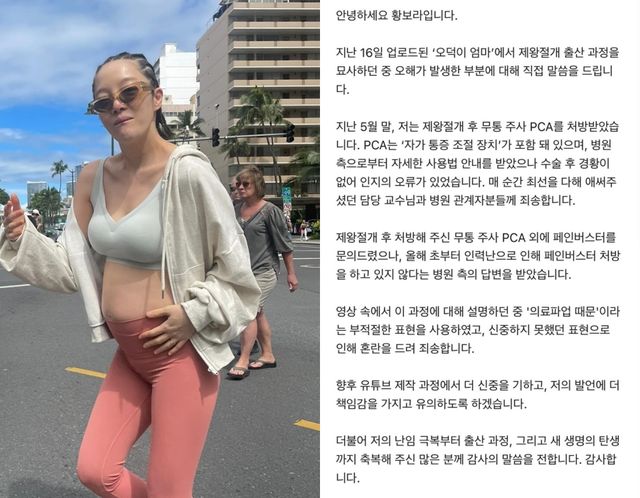 황보라가 출산 중 무통주사 처방과 관련해 고개를 숙이는 일이 있었다.