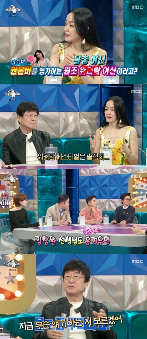 김국진은 김윤아에게 "알고 보면 권은비를 능가하는 원조 워터밤 여신이라고?"라는 질문을 남겼다. 이에 김윤아는 민망한 듯 웃더니 "물총 여신"이라고 정정했다. 여름이라 페스티벌이 많기 때문이라고.