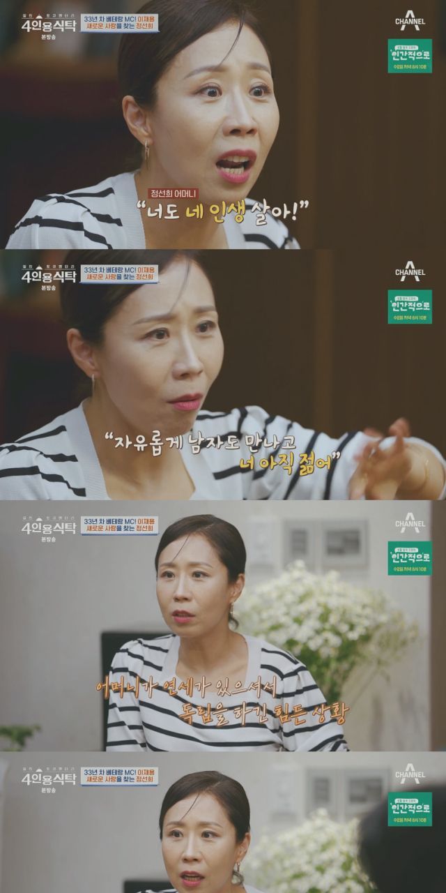 종합편성채널 채널A '절친 토큐멘터리 4인용 식탁'에서 개그우먼 정선희가 재혼에 대한 생각을 공개했다.