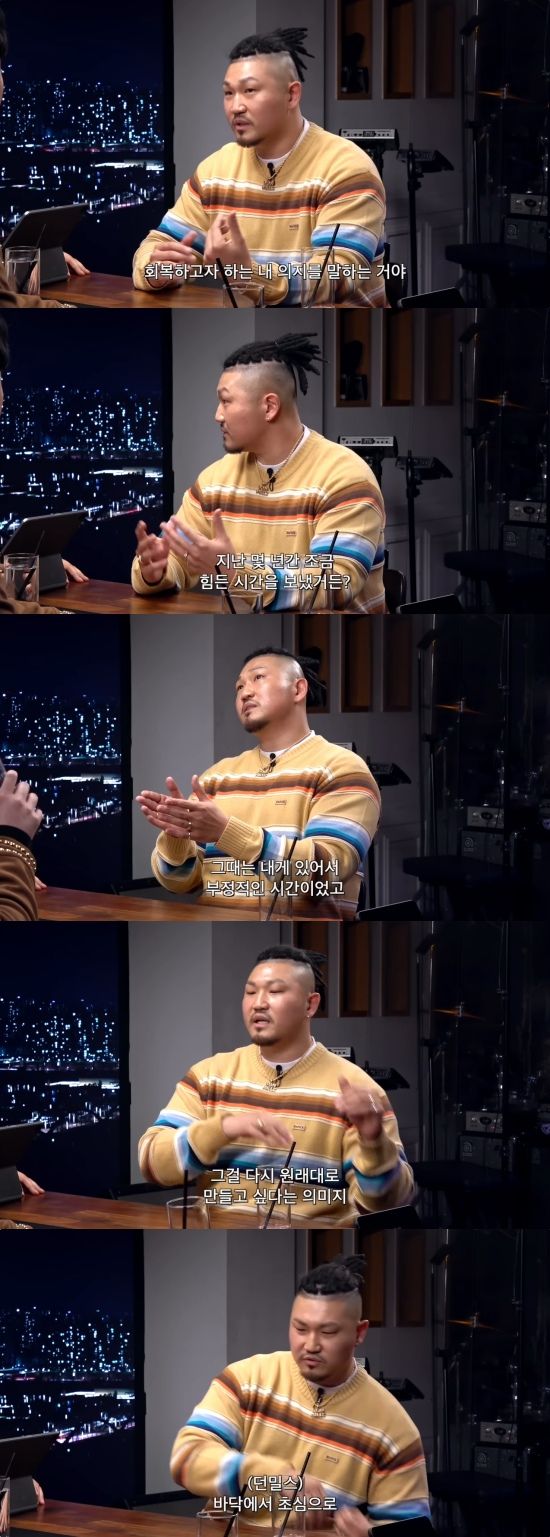 오늘 피식대학 유튜브 채널에서 래퍼 던밀스가 출연한 '피식쇼' 영상이 게재되었다. 이날 던밀스는 정재형의 질문에 "이 말을 해야겠다. 여기서 인생이 바뀐다는 의미가 돈을 많이 번다거나 큰 집을 산다거나 하는 게 아니다. 그것보다는 회복하고자 하는 내 의지를 말하는 것"이라고 답했다.
