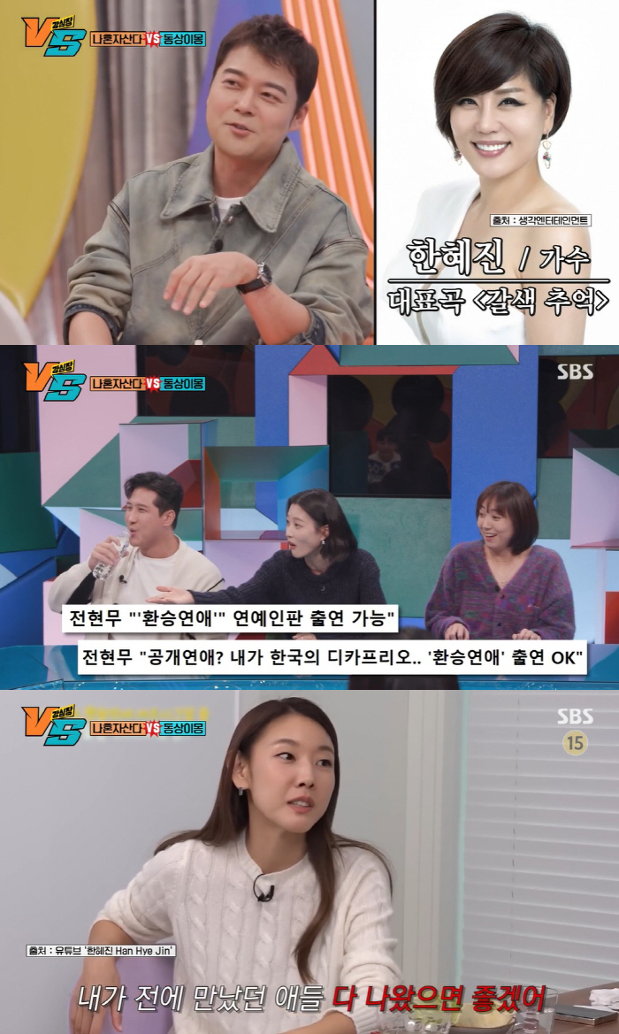 SBS '강심장VS'에서 방송인 전현무가 전애인 한혜진을 언급하며 '환승연애'에 출연할 생각이 있다고 밝혔다는 소식이 들려왔습니다.