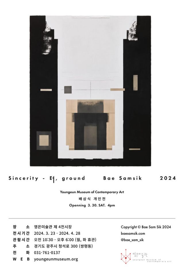 "영은미술관에서는 배삼식 작가의 개인전 'Sincerity-터'를 개최합니다. 이번 전시에서는 작가의 대표적인 형태인 사각형이 주목을 받습니다. 배삼식 작가는 자연과 생명, 인류의 문명, 합일 혹은 충돌 등 다양한 주제를 담은 '터'를 작품에 담아냅니다.