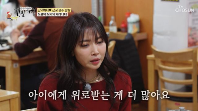 오윤아는 "당연히 아들이 생각난다. 아들이랑 먹다가 맛있는 음식이 보이면 부모님이 생각난다. 어쩔수 없는 것 같다"라며 아들바라기 면모를 보였다.