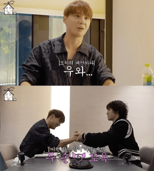 김준수는 대성과 함께한 방송 활동은 16년 전에 ‘패밀리가 떴다’ 이후 처음이라고 밝혔습니다. 이를 듣던 대성은 “내가 20살 때였다”며 그 당시의 기억을 떠올렸습니다.