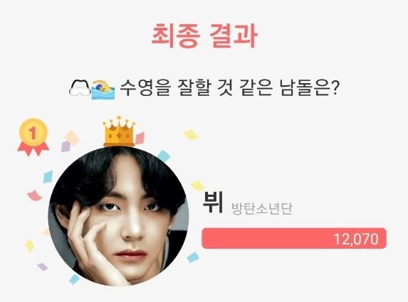 "방탄소년단 뷔가 '수영을 잘 할 것 같은 남돌' 1위에 선정돼 만능 스포츠맨의 면모를 뽐냈다는 소식이 전해졌다.