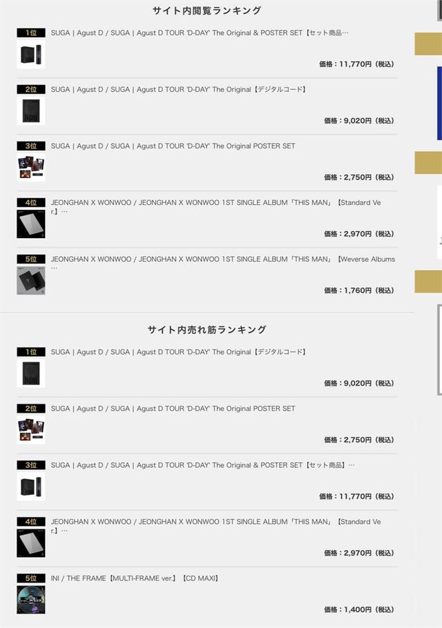 ‘더 오리지널'은 일본FC 공식 판매 사이트에서도 전 상품이 1차 2차 모두 품절되는 등 일본에서도 큰 인기를 끌었다. 일본 유니버설 뮤직 스토어에서 가장 많이 조회한 상품 1위에 오르기까지하며 전 세계적인 인기를 입증했다. 슈가의 인기는 한국뿐만 아니라 전 세계적으로 높은 것으로 확인되었다.