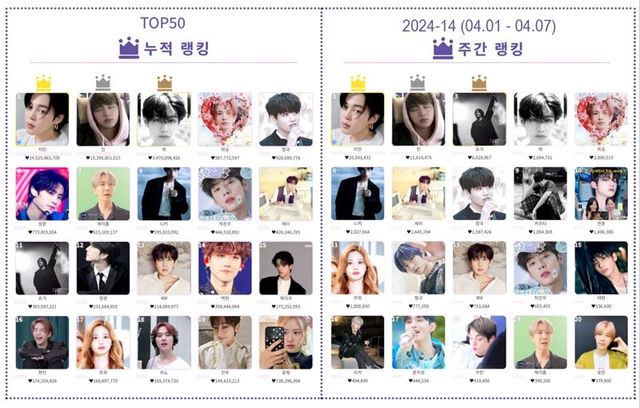 이로써 누적 득표량 145억 2642만 9926표로 2위와 41억 이상 큰 차이로 명예의 전당 1위 왕좌를 굳건히 지키고 있는 지민은 케이팝의 월드클래스로서의 위상을 다시 한번 입증하고 있다.