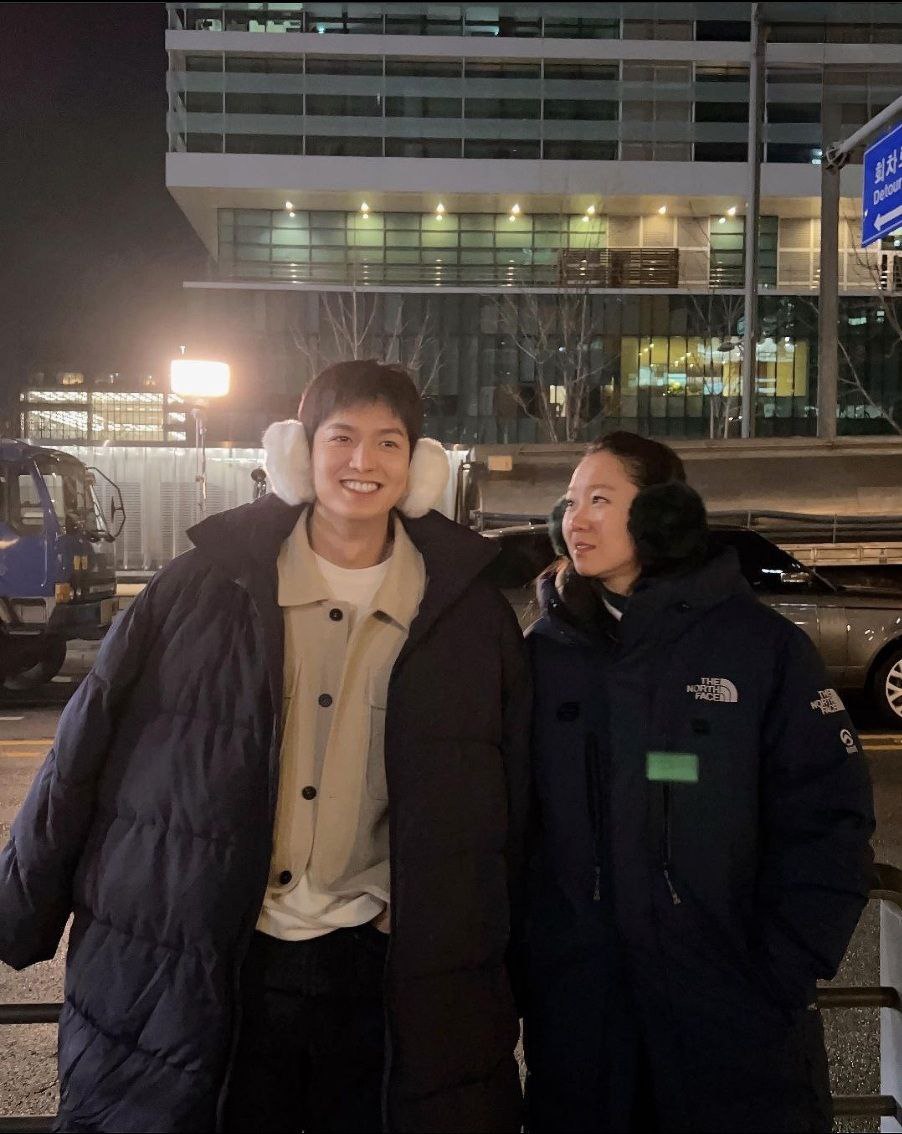 공개된 사진 속 이민호는 공효진과 함께 야외에 나란히 서 있어 눈길을 끌었어요. 날씨가 추운 듯 똑같은 긴 패딩을 걸치고 비슷한 방한 귀마개를 한 공효진과 이민호가 귀여움과 촌스러움을 재미있게 표현해 줬어요ㅎㅎㅎ