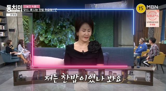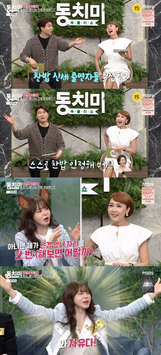 최은경이 주제를 설명하자 박수홍은 "여기 찬밥들 나온 거냐"라며 말했고, 최은경은 "식은밥, 찬밥 다모였다"고 덧붙였습니다. 이에 김현욱은 "저는 찬밥 아니다"라고 다급히 말했고, 선우은숙은 "저는 찬밥이었나 봐요"라며 손을 들었습니다. 박수홍은 "찬밥 하나 인정"이라고 말했고, 최은경은 "하지 말라"며 선우은숙을 말렸습니다.