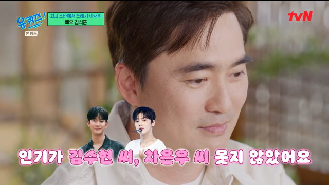 과거 배우 김희선과 호흡을 맞춘 드라마 '토마토'로 최고 시청률 52.7%를 달성하며 큰 인기를 누린 김석훈에 대해 유재석은 "당시 인기가 김수현, 차은우 못지않았다"고 증언했다.