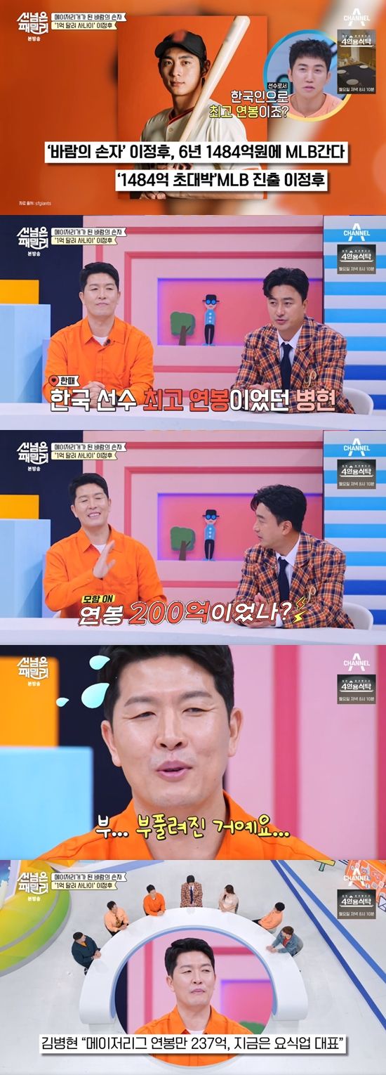 이에 김병현은 "아니다. 부풀려진 것. 가장 많이 받았을 때는 2004년도"라고 진땀을 뺐다.