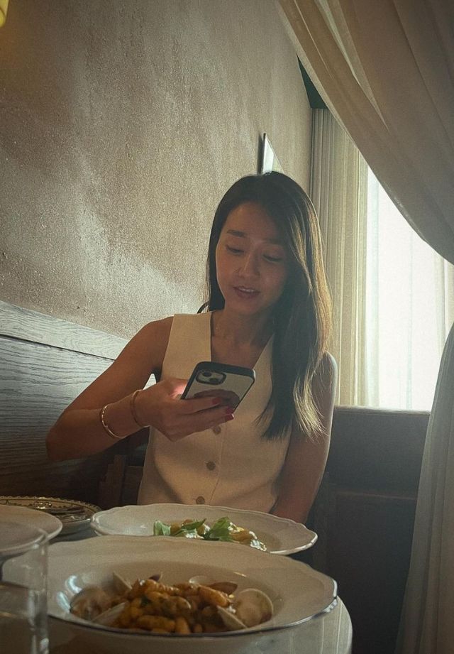 화이트 민소매 상의를 착용한 이진은 가녀린 팔뚝을 드러내고 있어 여전히 그녀의 아름다움을 감추지 않고 있다. 그녀의 우아한 분위기와 아름다운 외모에 감탄을 자아내며 이진의 뉴욕 일상을 엿볼 수 있다.