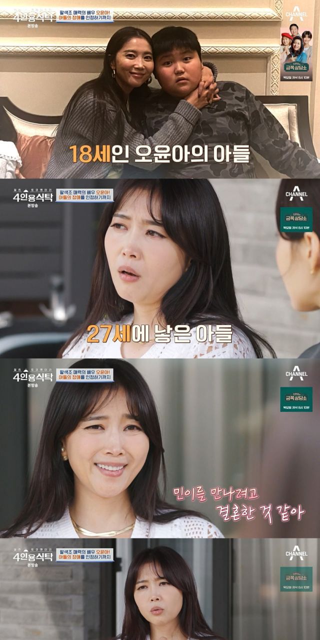 오윤아는 아들 민이가 지금 18살이라고 밝히며 "내가 2007년에 결혼을 했는데 허니문 베이비고 한 달 빨리 낳아가지고 8월 31일이 민이 생일이다. 나는 민이를 만나려고 결혼한 것 같다"고 말했다. 이어서 "민이가 태어날 때부터 호흡 곤란이 와서 인큐베이터에 있었고 걸음마도 느리고 일어나는 것도 느렸다"며 "두 돌이 지난 후 어린이집에 보냈는데 선생님이 자폐가 의심되니 병원에 가보라고 하더라. 그래서 충격에 가슴이 철렁 내려앉고 미칠 것 같았다"고 당시를 회상했다.