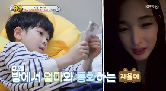 이후 재율 군이 방으로 들어가 율희와 영상 통화를 하는 모습이 공개됐다.
