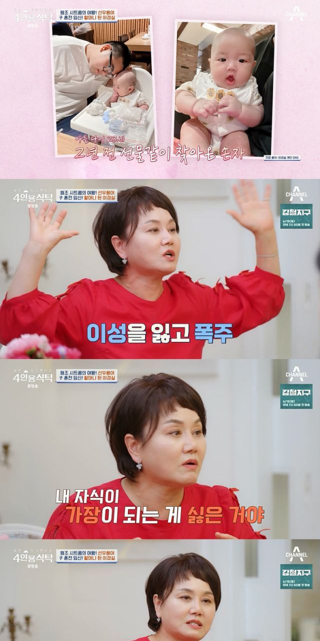 아들인 배우 손보승의 혼전임신에 대한 심경을 공개한 개그우먼 이경실./종합편성채널 채널A '절친 토큐멘터리 4인용 식"