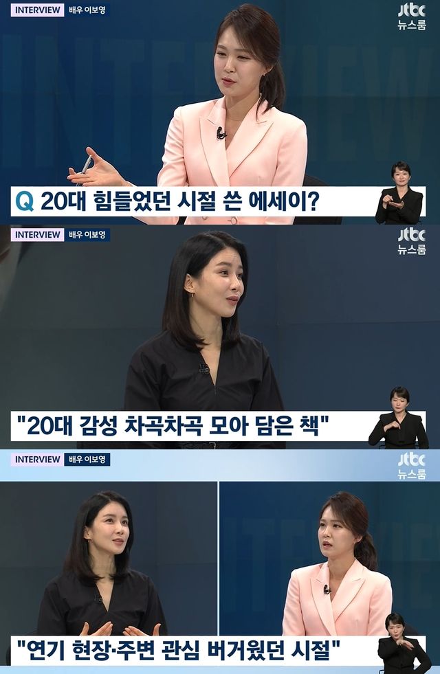 이보영은 24일 방송된 JTBC '뉴스룸' 초대석에 출연해 인터뷰에 참여했다. 그는 "20대 시절이 너무 힘들었어서 돌아가고 싶지 않다던데"라는 질문에 "그때는 현장이 버거웠고, 사람들 관심도 버거웠다"라고 고백했다.
