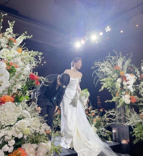 이선영 아나운서의 결혼식 사진이 공개됐다. 이선영은 28일 자신의 SNS 계정을 통해 "축복해 준 모든 분들께 감사의 마음을 전한다"며 결혼 소식을 전했다. 그녀는 전날 1살 차이나는 연인인 부동산테크 스타트업 임원 조 모 씨와 3년의 열애 끝에 웨딩마치를 올렸다.