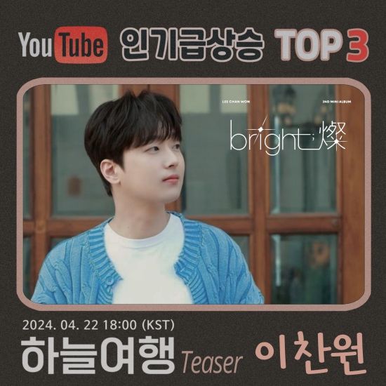 이찬원의 '하늘 여행' 티저 유튜브 인기 동영상 TOP3에 등극! 역시 찬또의 컴백!