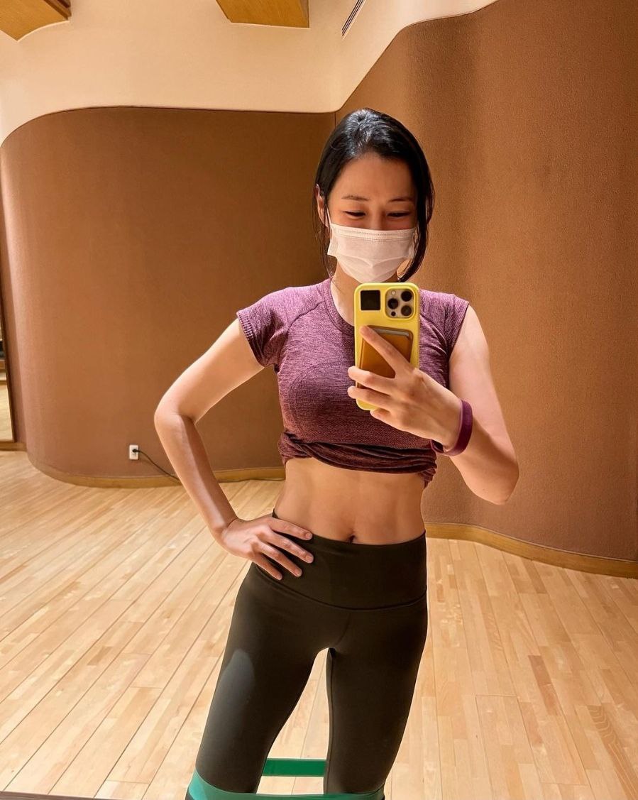 출산한 몸매라고는 믿을수 없을 정도로 선명한 복근을 자랑했어요.