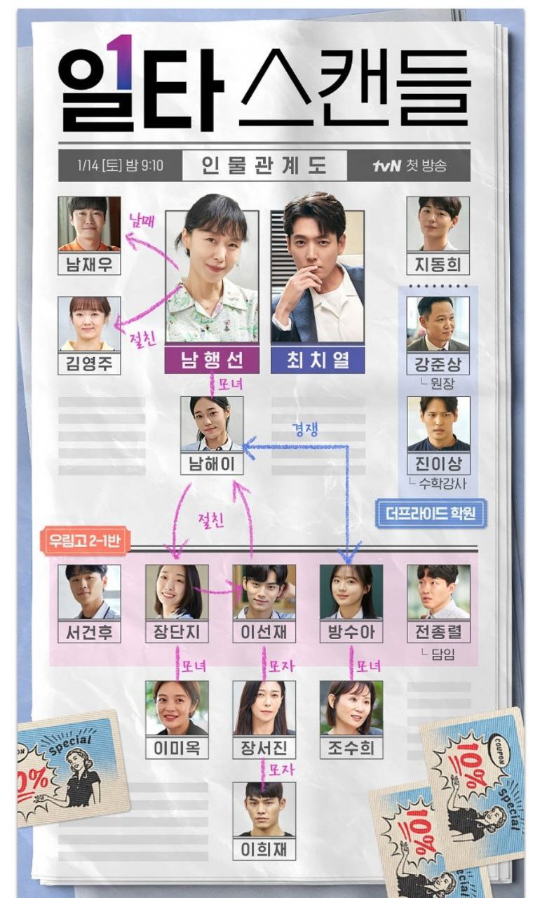 '일타 스캔들'은 tvN 토일드라마 '환혼: 빛과 그림자' 후속으로 14일 오후 9시 10분 첫 방송됩니다.