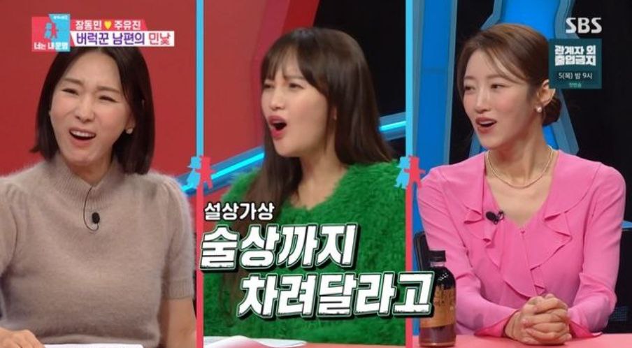 김구라는 장동민에게 "아내가 거짓말을 했다는 게 사실이면 나중에 엄청 뒤집어 씌울 거다"라고 말해 웃음을 자아냈어요.