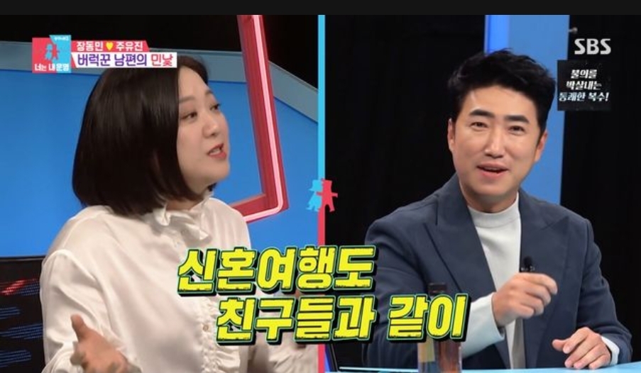 그리고 장동민과 장동민와이프는 사람만나는걸 좋아해 집에 초대도하고 심지어 신혼여행도 친구들과 같이 갔다는 애피소드를 소개했어요.