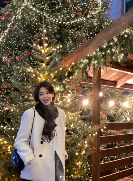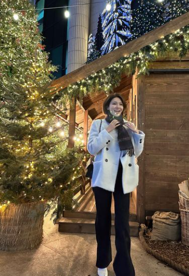 수영은 크리스마스트리 앞에서 포즈를 취하고 있는 모습을 올렸는데요.