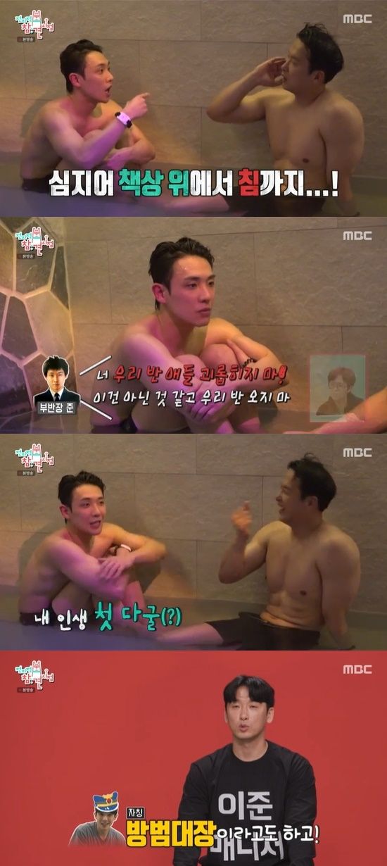 운동을 끝낸 이준은 매니저와 함께 사우나를 찾았다. 어린시절 어좁이였던 그는 중학생 때 팔 운동만 열심히 했다고 밝혔다. 그는 "친구 중에 한 명이 일진들하고 싸울 때 팔에 힘이 있어야하지 않겠냐고 해서 팔 운동만 하게 됐다"고 말했다.