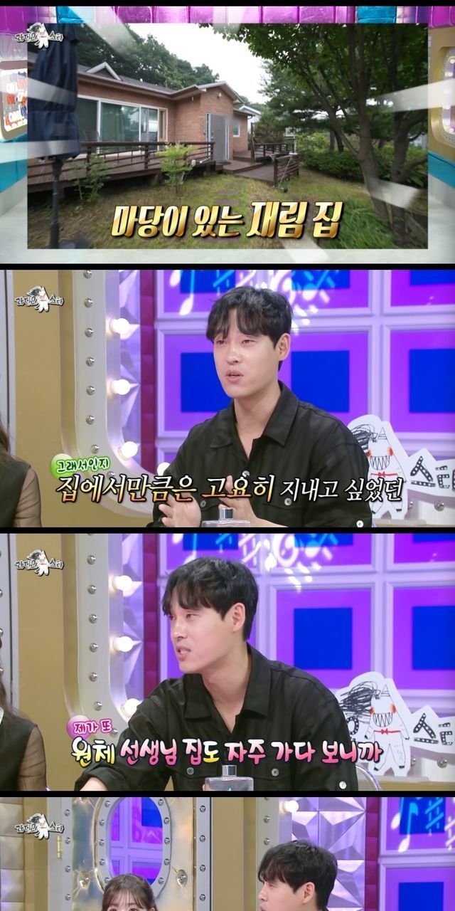 그는 또 "선생님 집에 많이 얹혔다. 밥도 얻어먹고 세탁기도 좋은 걸 갖고 있기 때문에 세탁기도 많이 쓰고 원체 바쁜 사람들이다. 선생님이 지방을 내려갈 때 있으면 내가 대신 고양이 세 마리 밥을 먹인다. 나는 강아지 두 마리를 키운다. 내가 바쁘면 선생님이 와서 봐준다"라고 전했다.