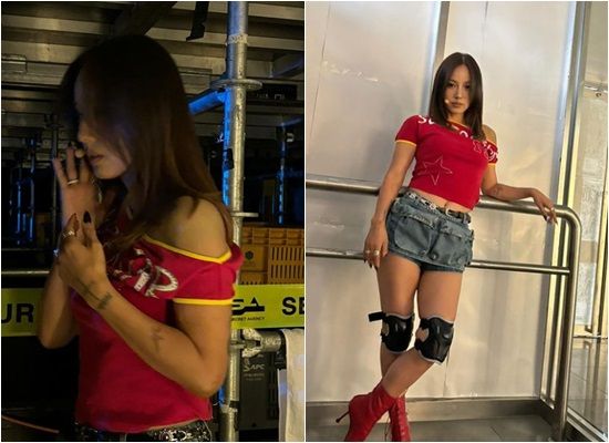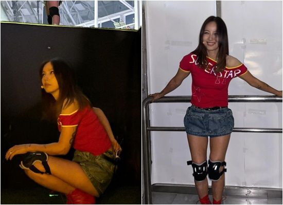 이효리는 15일 자신의 계정에 "리프트 쭈구리. 오랜만^^. 악뮤, 악뮤팬분들 고마워요"라는 글과 함께 여러 장의 사진을 게재했다. 공개된 사진에는 이효리가 강렬한 레드 컬러의 상의에 데님 미니스커트를 매치해 2003년 '텐미닛' 활동 당시를 떠올리게 하는 패션과 감성으로 무대를 준비 중인 모습이 담겼다.