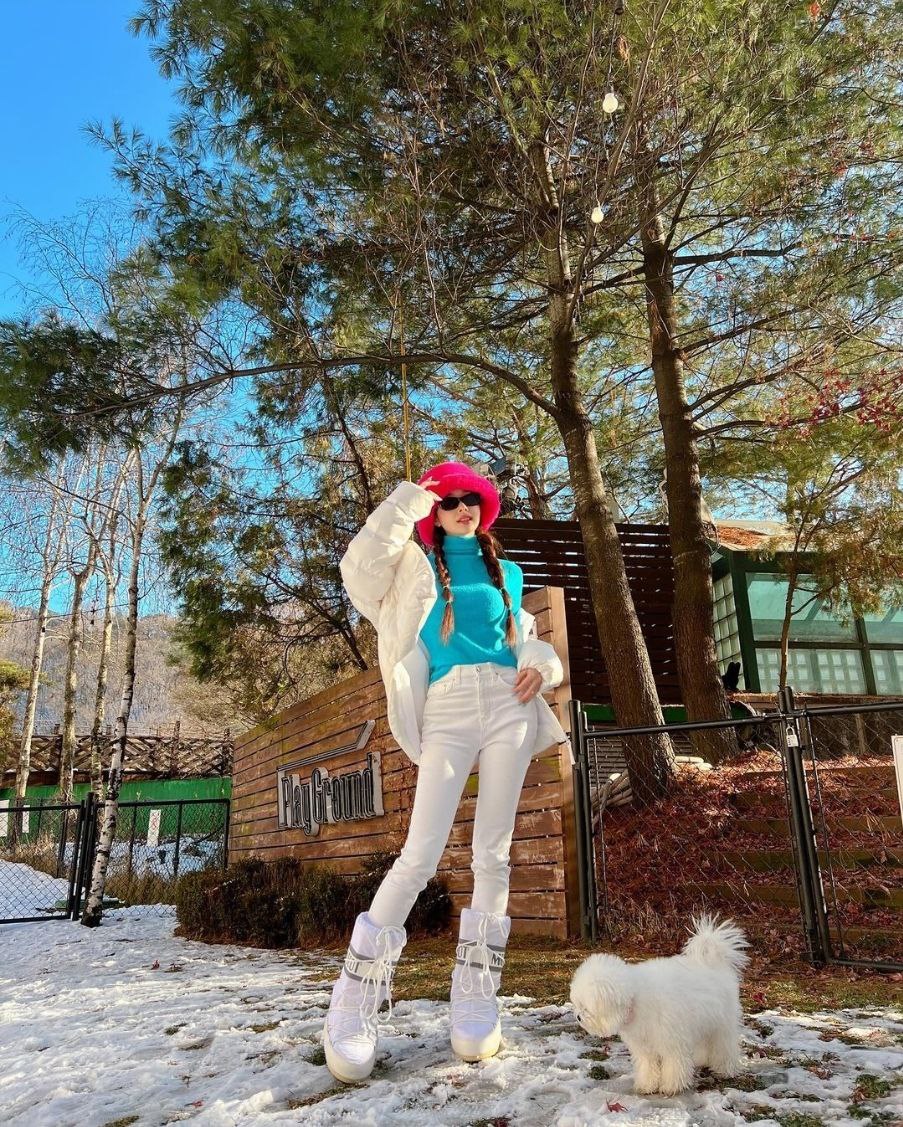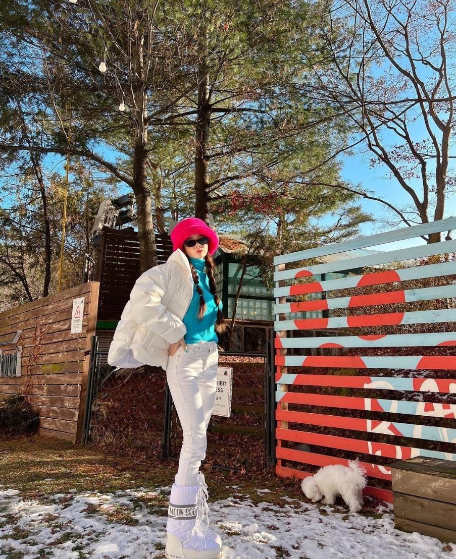 소화하기 힘든 색상임에도 프리지아는 완벽하게 소화하며 역시다 하는 패셔니스타다운 모습을 뿜뿜하고 있습니다.