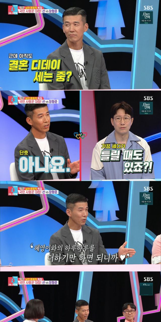 그리고 션은 "디데이를 꾸준히 셀 수 있는 이유는 정혜영이 좋은 사람이고 좋은 남편이기 때문이다"라고 말해 출연자들의 웃음을 자아냈다.