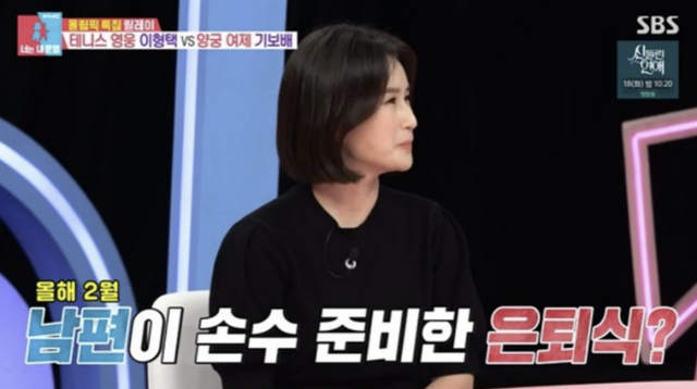 기보배는 "제가 선수생활을 27년 했다. 남편이 기자 생활을 했고 지금 언론사에 종사하고 있다. 기자 분들에게 전화해 모시고 식사하고 답례품까지, 1에서 10까지 다 준비를 해줬다"고 남편을 향해 고마움을 드러냈다.