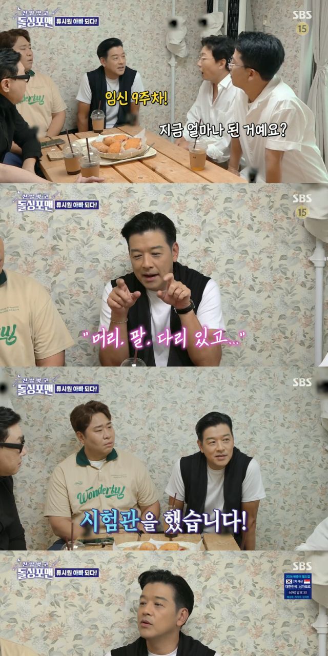 4일 방송된 SBS 예능 프로그램 '신발 벗고 돌싱포맨'에 출연한 류시원은 "새 아이가 생겼다!"라며 기쁜 소식을 전했다. 이어 "지금 이제 한 9주 됐다"고 말하며 아내의 임신 상황을 밝혔다. 그는 어제 병원에서 초음파를 보고 왔는데, "머리, 팔, 다리가 있고 심장이 쿵쿵쿵쿵 뛰더라고"라고 설레는 마음을 드러냈다.